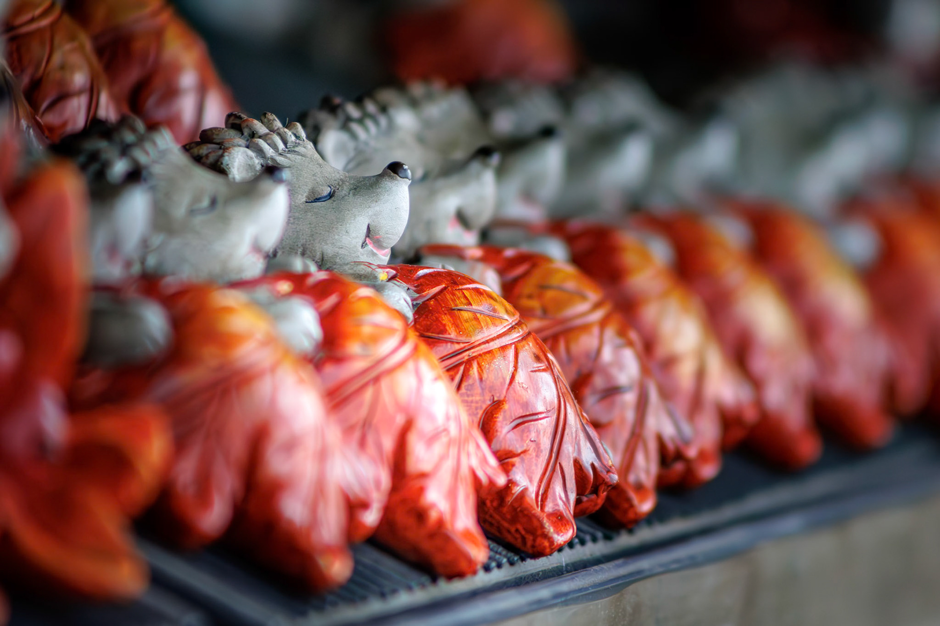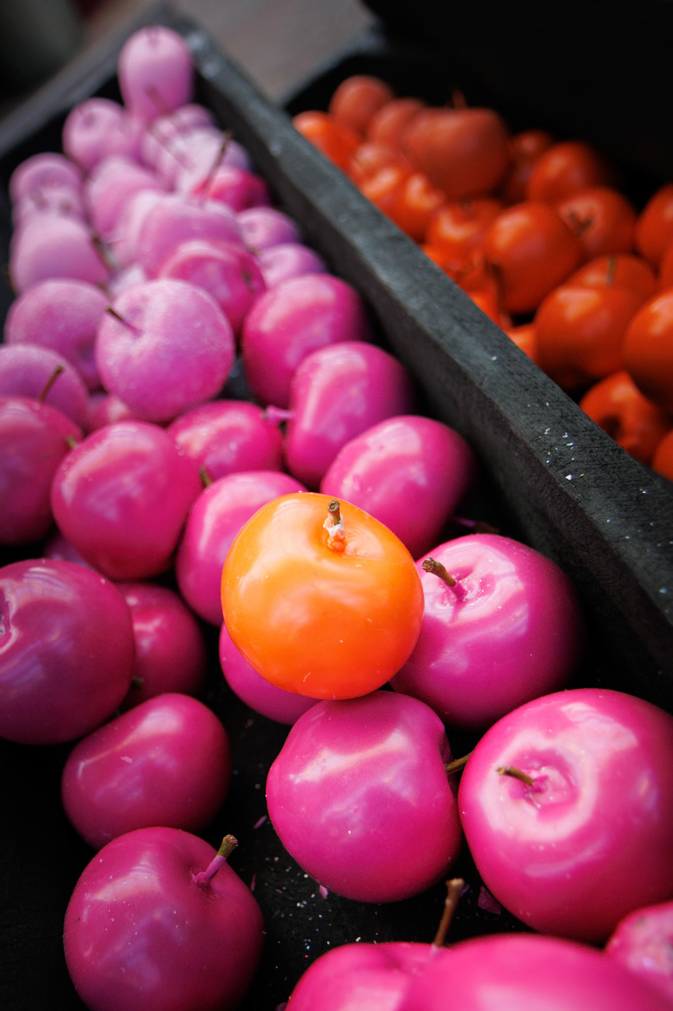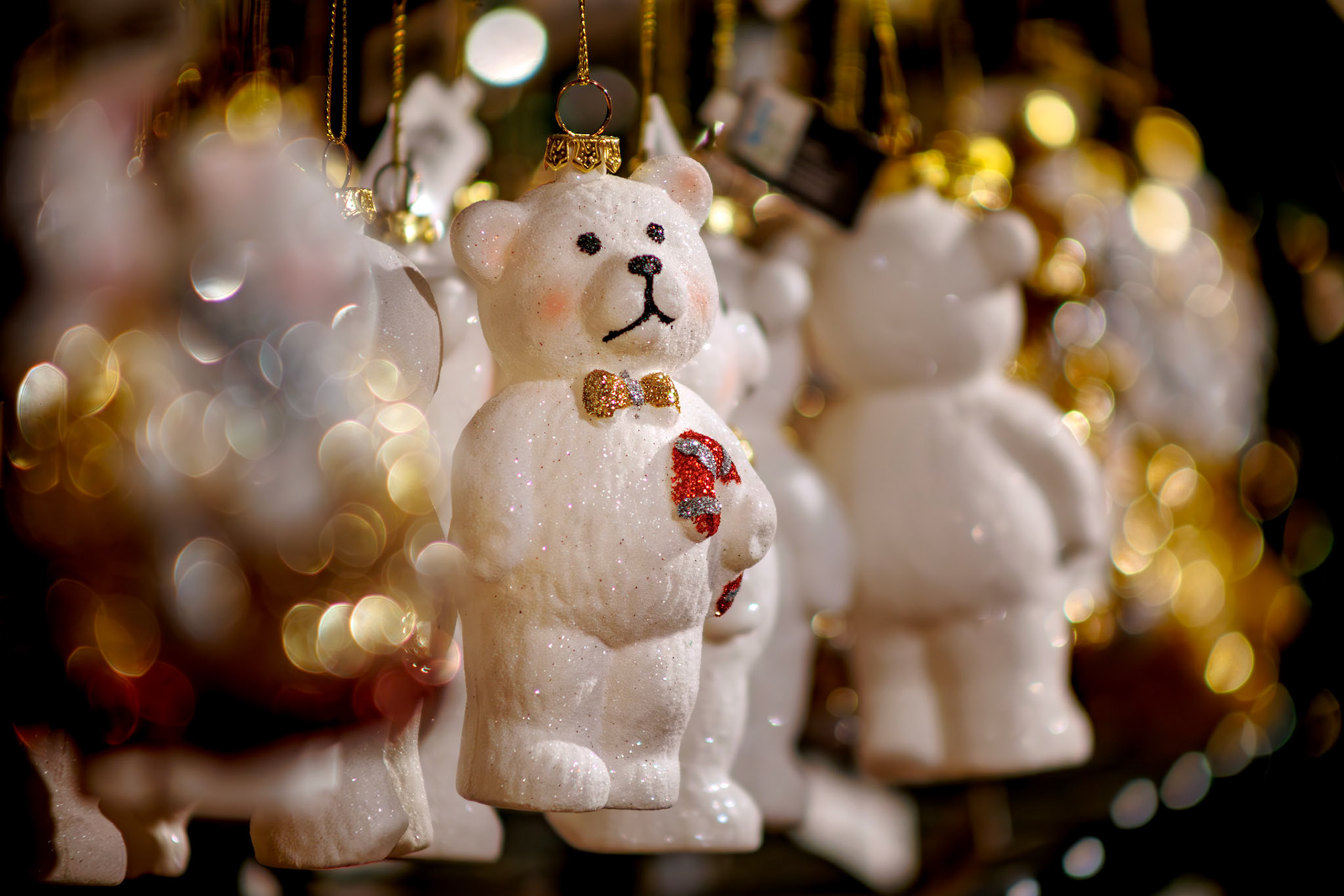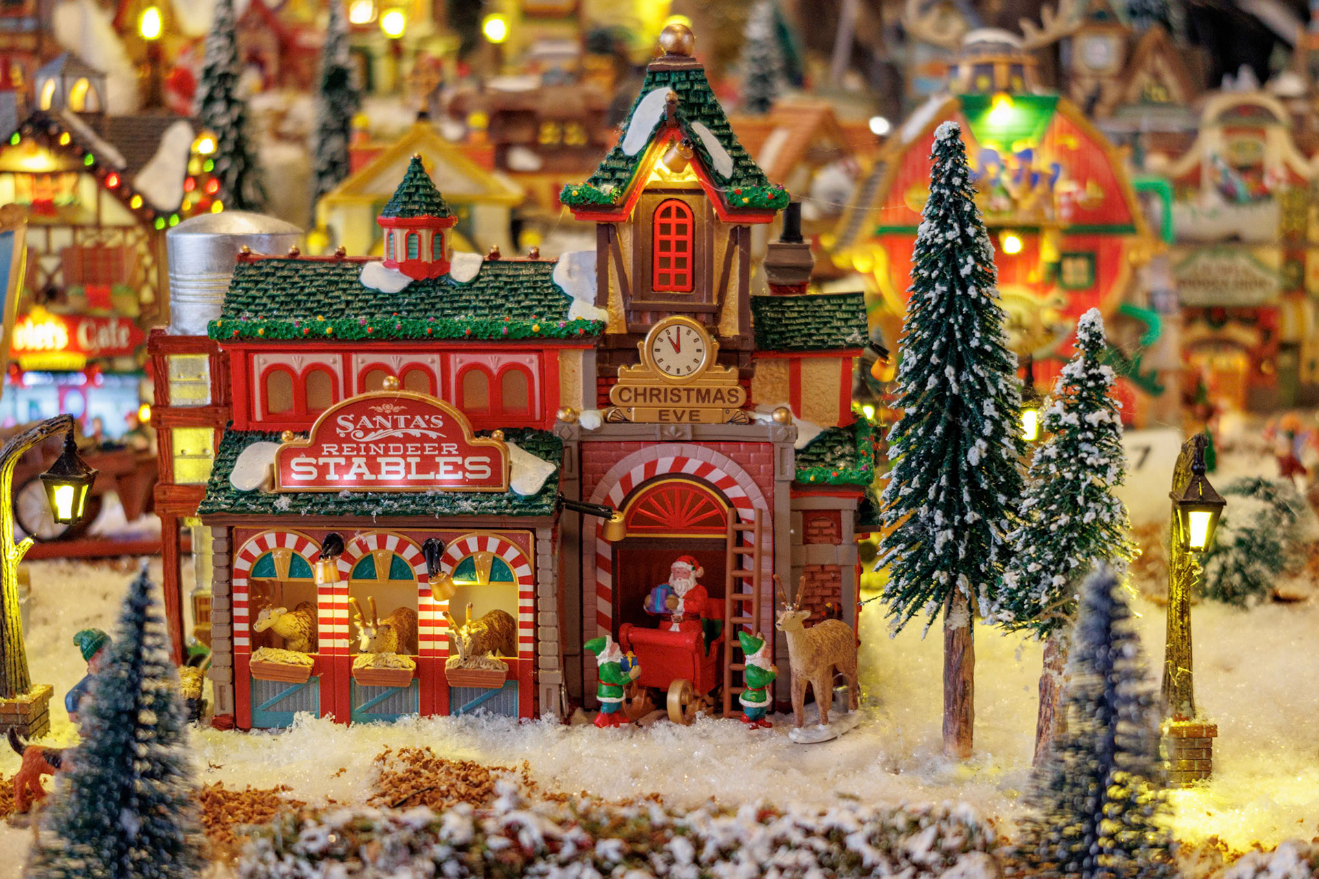 serie kerstboompjes handmatig uit focus gedraaid